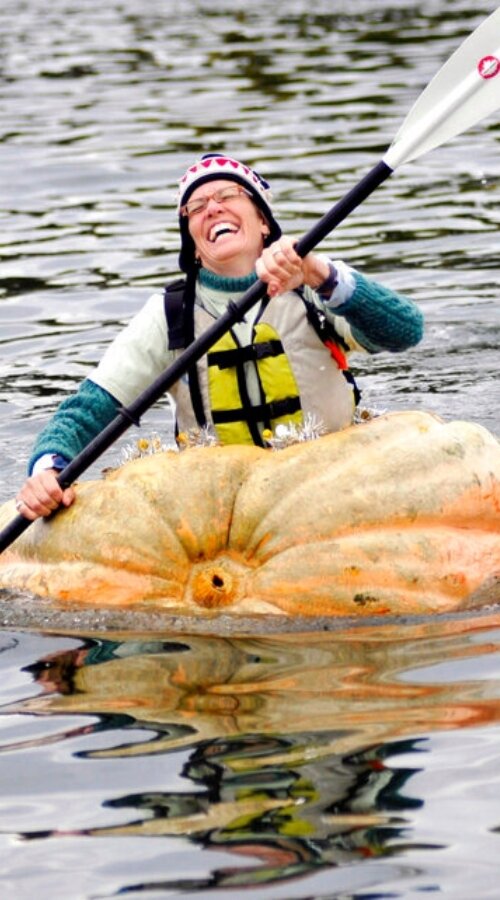 The wider event includes the Shelburne Gold Market, a timber show, bouncy houses and more activities. But the main draw is the pumpkin race itself, as competitors steer their oversized harvest down the waterfront course.