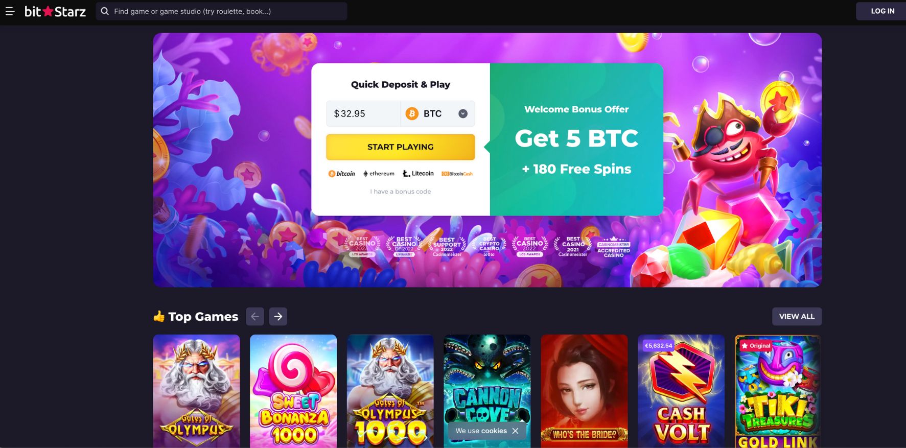 BitStarz is one of the best options for crypto heads. Not only does this online casino support over 500 digital currencies, but it also has some lucrative bonuses for crypto deposits, the best one being the welcome bonus pack of up to 5 BTC. Its game library also impressed me a lot, especially the section with exclusive games.