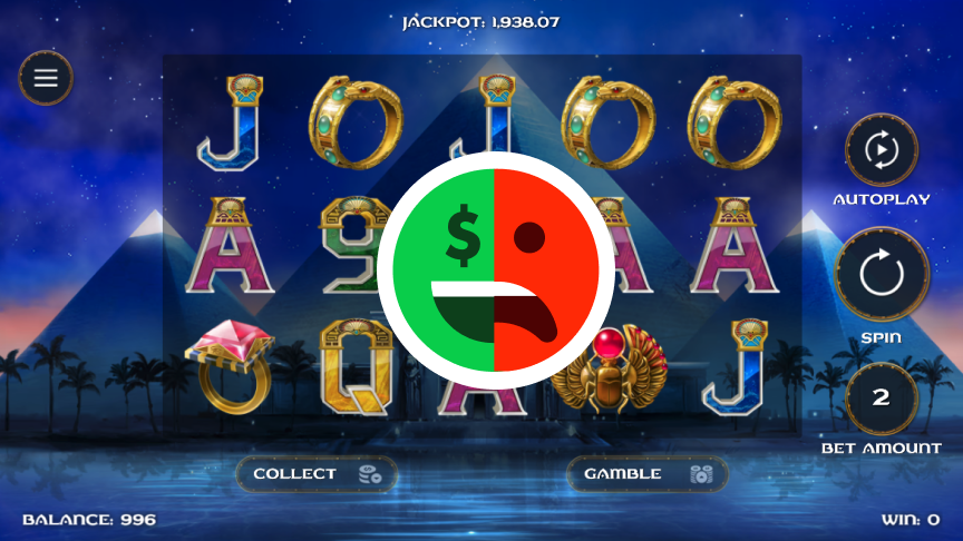 After any win, you can gamble your winnings by guessing a card. Each correct guess doubles your prize and reveals more of Cleopatra. You can gamble up to five times per win.